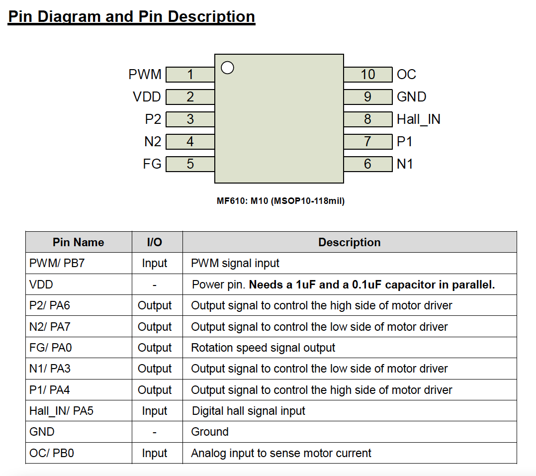 DC Fan Applications - Operating voltage range: 3.5V~6V - Operating temperature range: -40°C~105°C