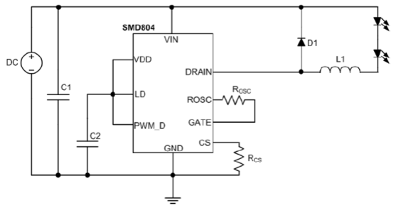 60V1A Buck Converter For LED Applications : Built-in 60V MOSFET Constant-off Time Frequency Mode With Analog and PWM Dimming