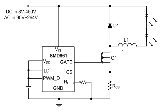 Average Current Mode Buck Contoller For LED Applications : Built-in High-V Input Regulator Constant-off Time Frequency Mode With Analog and PWM Dimming